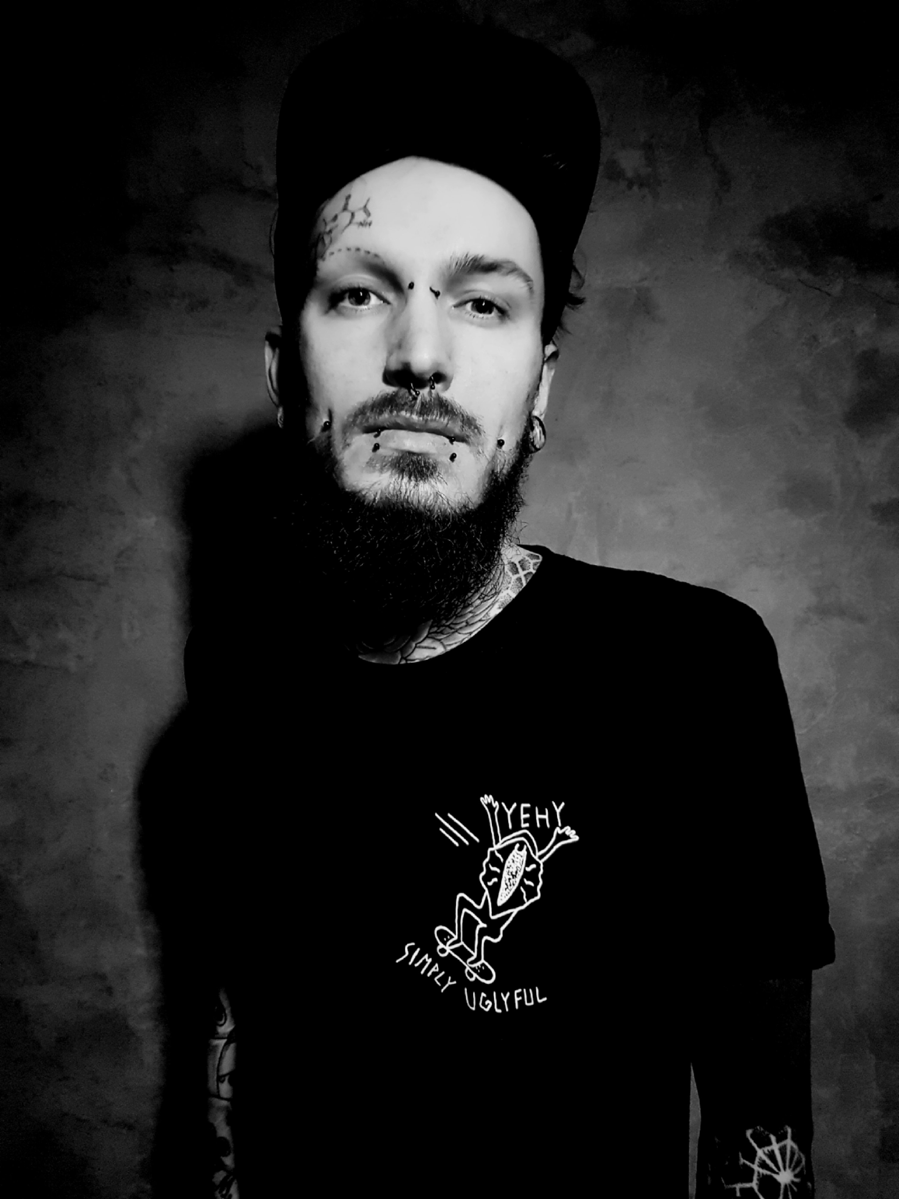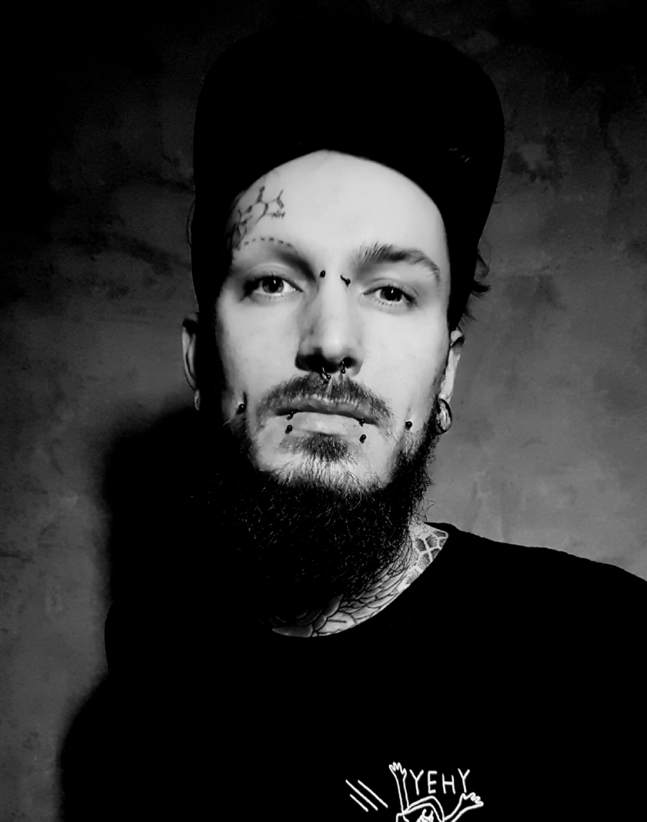Dennis’ tattooed himself, of course. He specializes in realistic tattoos. This means that his motifs must be photographable. He likes to go crazy at Photo Shop to prepare his templates. So he likes to create surrealistic motifs like a woman’s face with crystals growing out of it or an old sailor with mandala-shaped scars on his face and a bridge that serves as a cap.